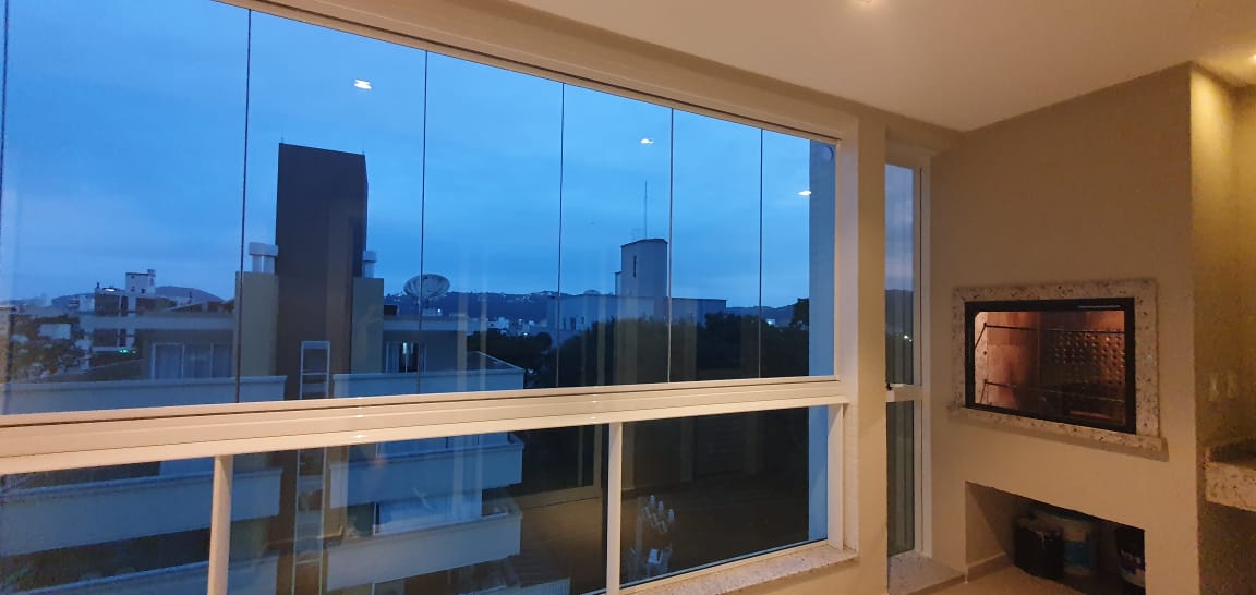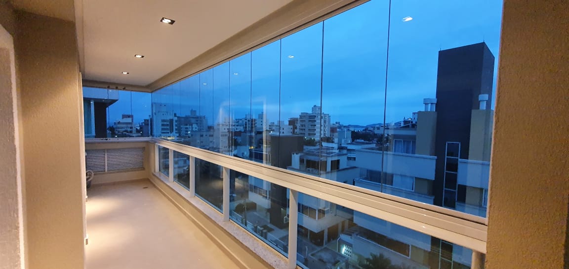 • Frontal do prédio em pastilhas, piso amaderado e pele de vidro;